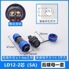 简筠(LD12后螺母2芯5A 公母一套)免焊接防水航空插头插座 螺丝型电线电缆公母对接电源工业连接器单位